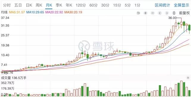 以上三个图形分别是贵州茅台(SH600519)、爱尔眼科(SZ300015)和福耀玻璃(SH600660)的月K线。(作者并不持有以上股票,不作荐股)