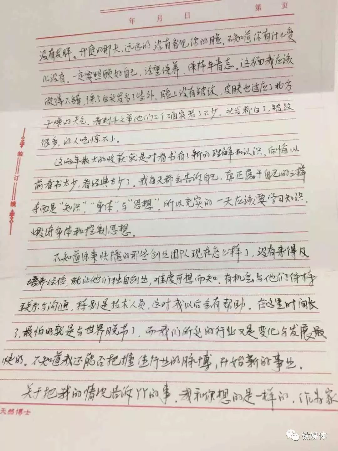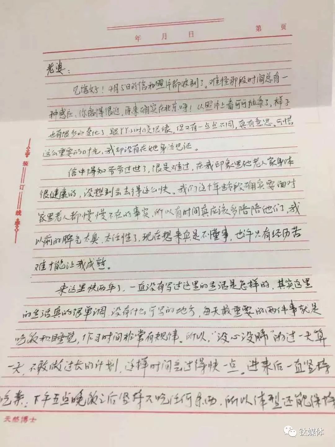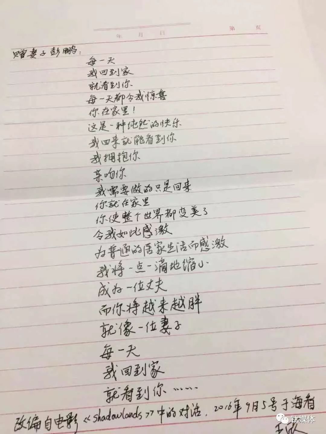 2016年4月王欣写给妻子的信件