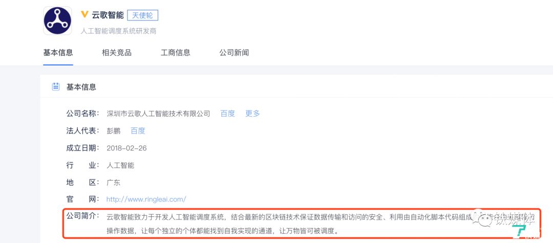 新成立的云歌智能公司简介显示,其公司业务一栏中“人工智能调度系统研发商”写明了这家公司的未来的大致方向。