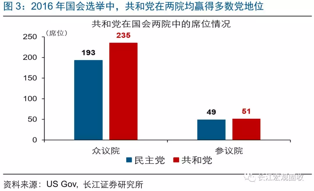 2)国会选举对特朗普未来政策推行至关重要。特朗普和共和党均支持减税、放松金融监管和废除奥巴马医保法案等,特朗普与民主党均支持增加基建投资和实施贸易保护等。若共和党赢得中期选举,特朗普或能加快推行二次减税、放松金融监管和废除奥巴马医保等;反之,特朗普或只能维持现有政策格局。此外,由于共和党反对扩大基建投资,特朗普仅获民主党支持依然较难让基建落地。