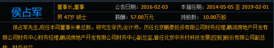 而北京中关村科技发展(控股)股份有限公司董事长侯占军薪酬为57万元,独立董事雷世文的薪酬为9万元。