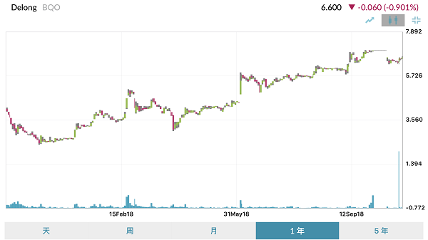德龙控股近一年K线走势图(新交所代码:BQO)