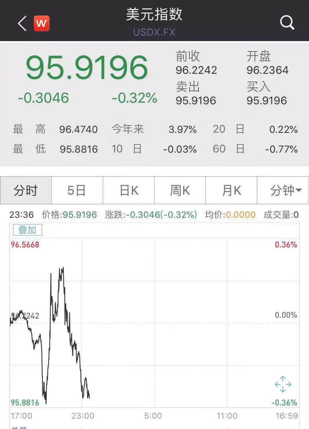 7日亚市交易阶段早盘,国际市场上美元指数呈现大起大落之势,指数一度跌破96关口,于北京时间8时前后下探95.88,创两周新低,较前收盘价跌约0.33%,后又迅速拉升翻红,重上96关口,截至中午12点半,报95.92,较前收盘价跌约0.32%。目前美国中期选举正进行,市场预期选举结果对美元、美债乃至全球金融市场都有较大影响。