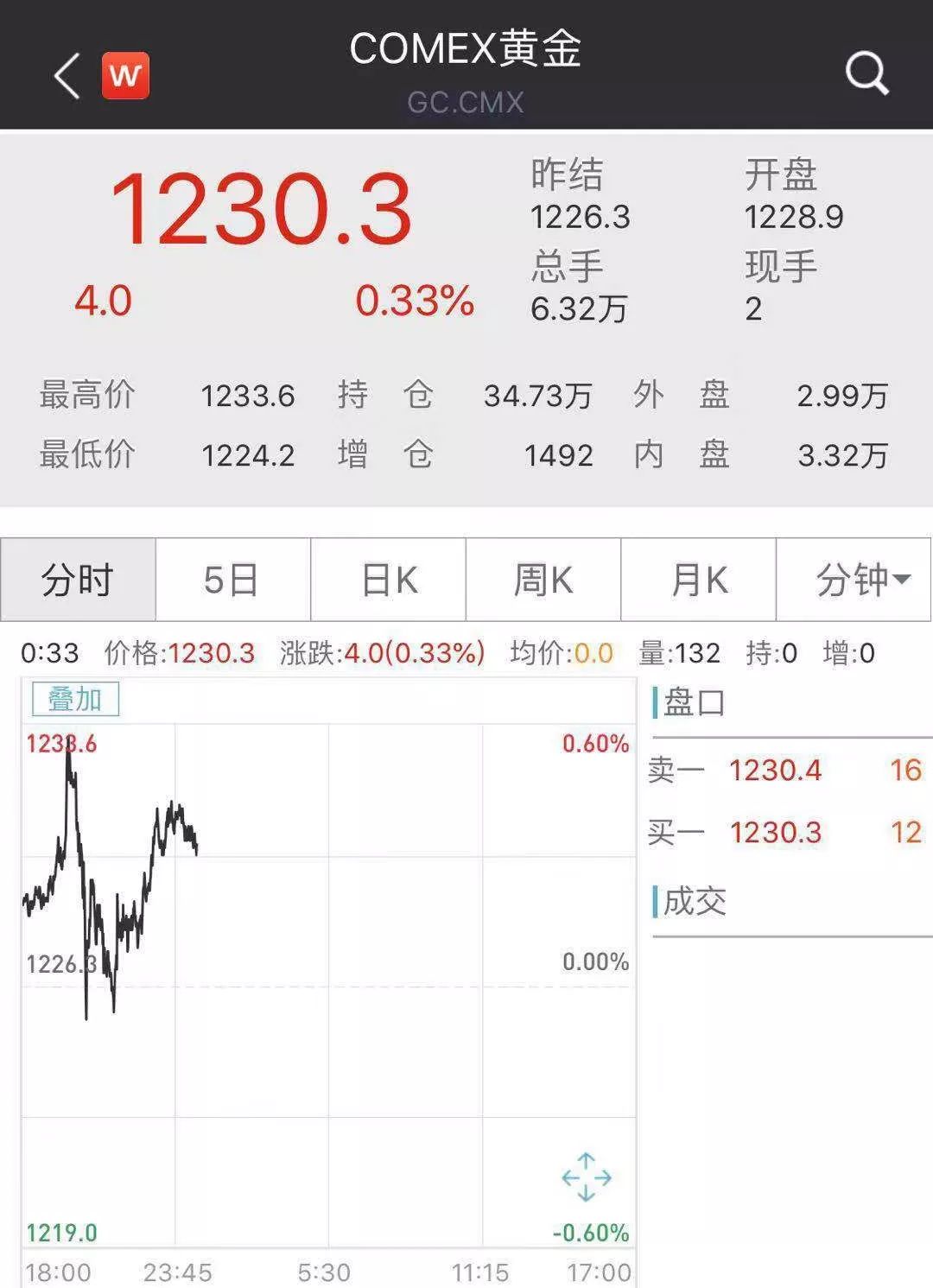 黄金走势: