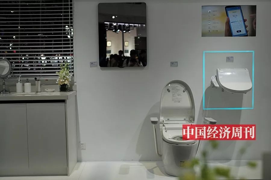 和检测笔,把试纸插在检测笔中,滴几滴尿液,手机APP 很快就能显示出蛋白质、酸碱度、肌酐等检测结果。另一边的扶手中则藏着一块磁片,配合马桶圈上的两块磁片,当使用者坐下来,手搭在扶手上,4 秒至5 秒钟就能测出体脂,同时生成健康建议。