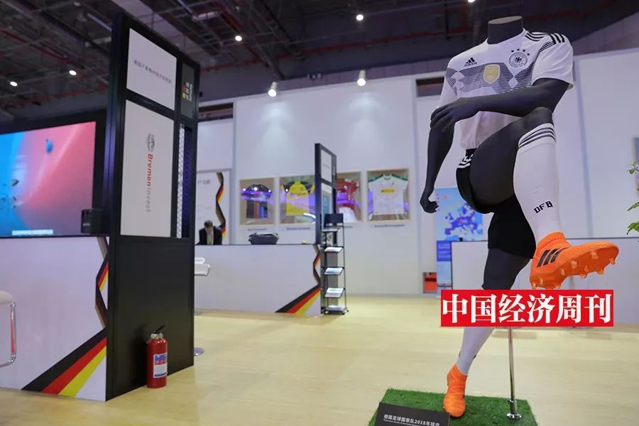 红黄黑三色组成了交织着激情和理性的德国馆。在德国国家馆,4 件陈列在墙上的德甲俱乐部球衣格外引人注目。走近观看后你会发现,这不是普通的球衣,上面签满了俱乐部球员的名字。