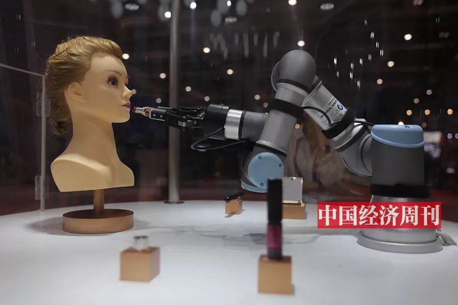 在欧莱雅化妆品展区,一台自动美妆机械臂吸引了众多参观者目光。自动美妆机械臂会画眉毛、刷腮红、涂唇膏……只需要5 分钟,就可以完成一个完整的妆容。美妆产品的智能化不只是机械臂,兰蔻的智能粉底制造器,可以使用比色计(评估肤色)扫描顾客的脸颊、额头和下巴,通过智能分析,调配出符合顾客肤色的颜料比例,再根据顾客对于遮瑕等的个性化需求,摇出一瓶完全个人化的粉底液。