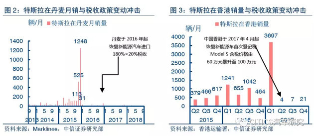 (2)中国香港于2017年4月之前对新能源汽车免征“首次登记税”,但随着这一税收恢复,虽然2017Q1销量跳升至3679辆,但随后三个季度特斯拉在港销售一共仅32辆。