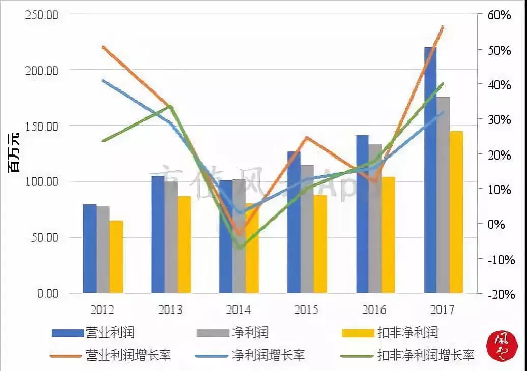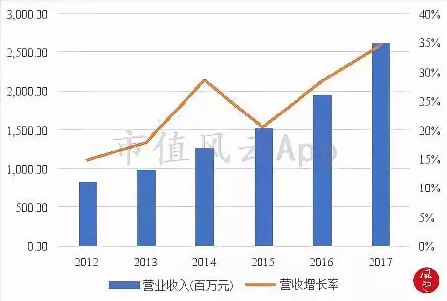 2012年至2017年,公司的营业收入整体呈现稳步上升的趋势,年复合增长率(CAGR)达到了21%。