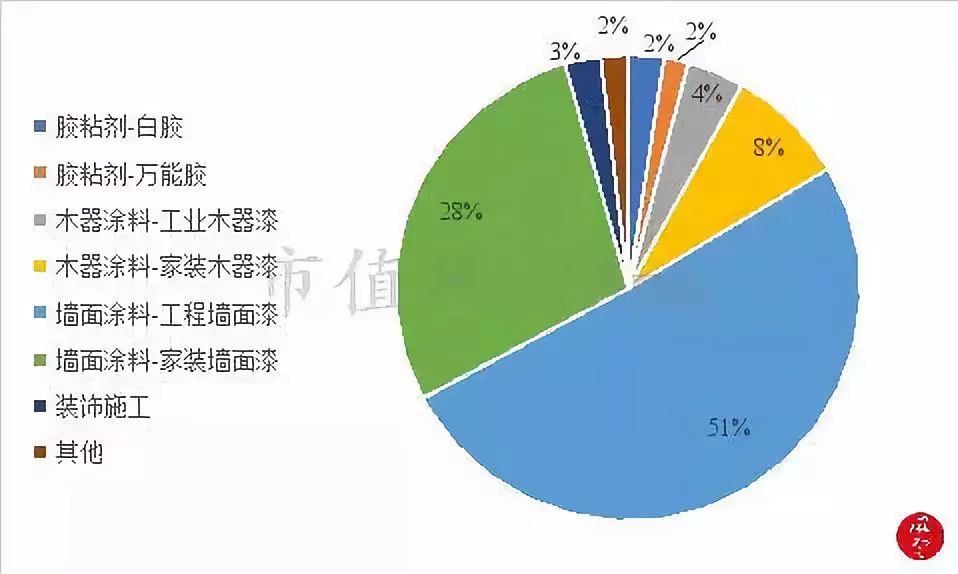 涂料行业处于整个产业链的中游,根据用途可进一步细分为木器涂料、建筑涂料、防腐涂料防火涂料、汽车涂料等。