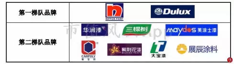 涂料品牌第一梯队主要是跨国的大品牌,包括PPG、立邦、多乐士等;