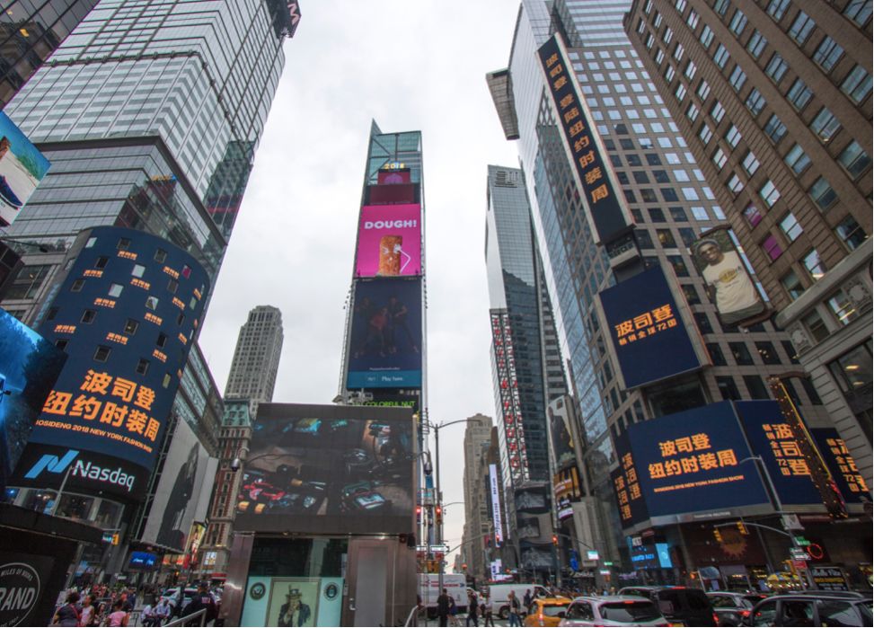 如今,波司登不断提升品牌形象、产品品质的决心有目共睹,而在渠道方面更是齐头并进。为彰显中国品牌立足于国际的民族自信,波司登一夜之间千店换logo,剔除原有的西方元素后的中文logo出现在纽约时代广场大屏幕上。