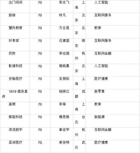排名前十的企业与上一期稍有不同,新增了微众银行,微众银行的估值从上一期的400亿上升到1000亿。蚂蚁金服仍以1万亿的估值位列第一,今日头条的估值从上一期的2000亿上升到5000亿,位列第二,滴滴出行保持3000亿的估值位列第三;腾讯音乐保持1500亿的估值排名第四,上升了两名;微众银行、京东金融、菜鸟网络、大疆、快手和陆金所以1000亿的估值并列第五。10月20日消息,今日头条正进行Pre-IPO轮融资,软银、KKR和春华领投,共募集40亿美元,投前估值750亿美元。同时,今日头条已经启动IPO的筹备工作,将于明年正式上市。
