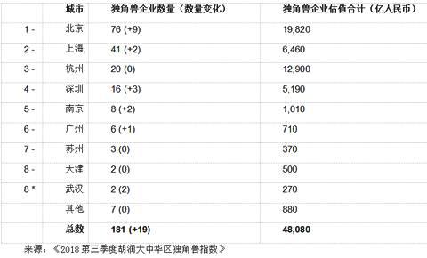中国2018年第三季度每2.6天一家新独角兽,总数上升至181家。