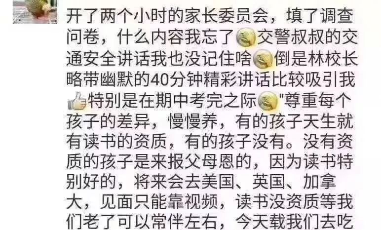 家长称:“两个小时的家长分享会,只记住了林校长的话: