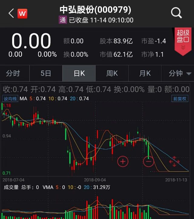 2018年11月16日起,A股首只因股价连续20个交易日跌破1元的股票——中弘股份将正式进入退市整理期。
