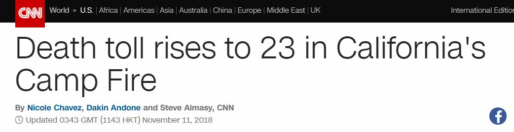 截至11月11日,大火造成的死亡人数达到23人