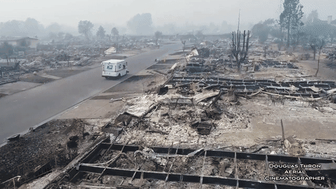 疯狂蔓延的烈火摧毁了天堂镇6453户居民的房屋及260处商业建筑,