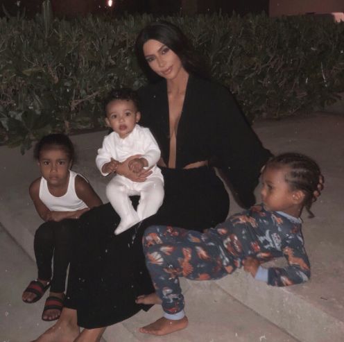 卡戴珊也带着孩子逃到了外面: