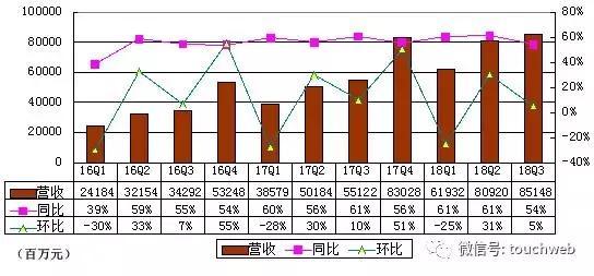 腾讯第三季度社交及其他广告收入增长61%至111.57亿元,主要反映广告资源的增加(如微信朋友圈)及新的广告形式(如小程序),及腾讯移动广告联盟及QQ看点的收入增长。