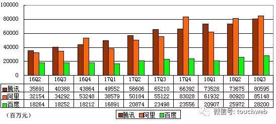 腾讯阿里单季营收破800亿 百度一度停滞增长