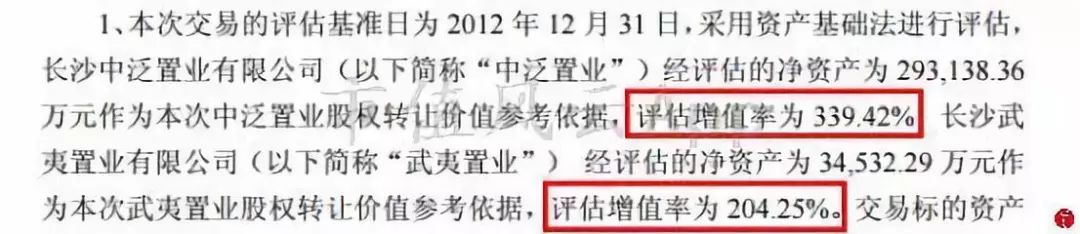 而且当时两家标的选用资产基础法而不是选择收益法,评估机构给出的理由是,对于武夷置业来说,从06年成立至今,只有一个房地产开发项目,而且还处于前期开发阶段,今后能否取得土地从事房地产开发具有较大不确定性;
