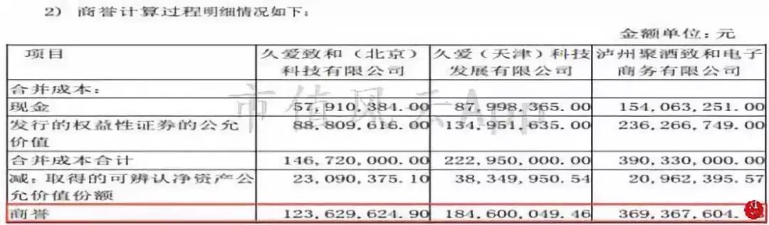 而且,一般而言,高溢价、高商誉对应高业绩承诺,而三家电商公司的业绩承诺,到顶了也才8500万,累计承诺业绩只有2亿,仅占交易对价的26%。无论是从承诺期间还是承诺总数来看,都是一项业绩保障度极低的交易。