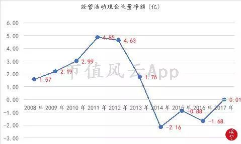 但是,在这背后,牺牲了依然还是公司的经营性现金流,收购完成后的2016年-2017年,公司的经营性现金流量净额均为负数。