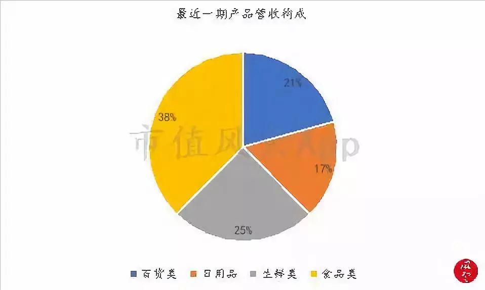 最近一年及一期的食品、生鲜销售额占比分别为38%、25%。
