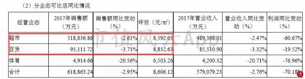 而且,根据最近一年一期的门店坪效情况来看,超市的销售绝对额依然高于百货,但是门店坪效较百货下降较高。因此,作为原有传统零售业务,就业绩含金量来说,属于大打折扣。