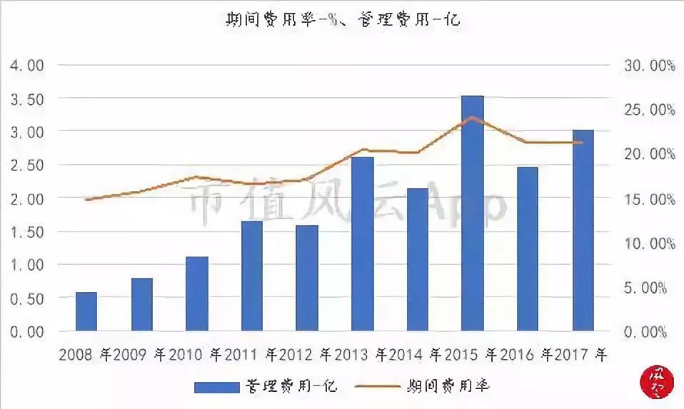 体现到财务数据上,则是公司因上述各项管理费用支出增加导致期间费用率逐步攀高,进而进一步导致净利率为负,低于行业平均。