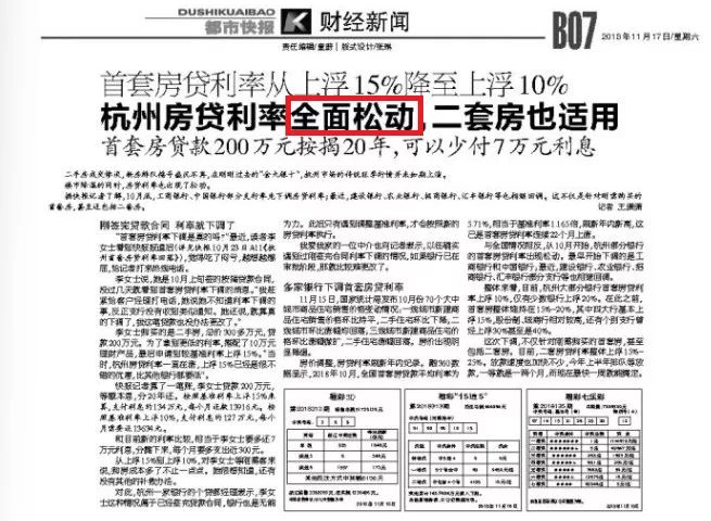 实际上,10月底股市已经因为“多城房贷利率松动”的消息掀起过一波涨停潮,其中就包括杭州。今天杭州都市快报不过是炒炒冷饭,但“全面松动”四个大字实在太打鸡血了。