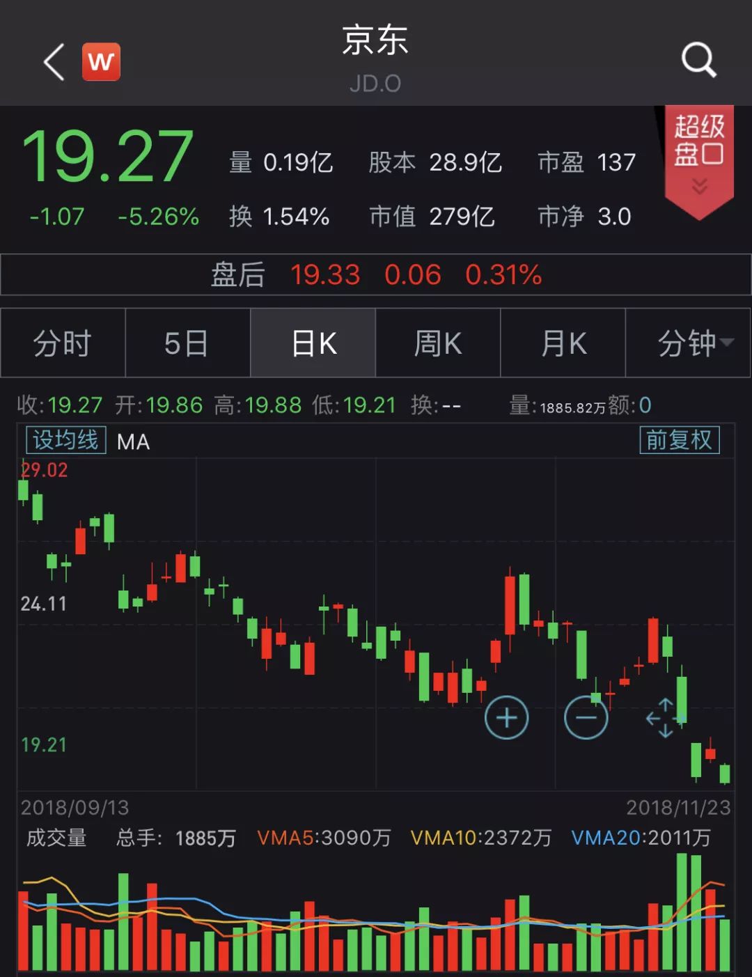 京东创收盘新低 距破发仅一步之遥