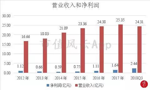 老白干酒的营业收入2012年至2017年分别为16.66亿、18.3亿、21.9亿、23.36亿、24.38亿和25.35亿,年均复合增长率8.79%,主要是2012年以来,白酒行业受国家限制三公消费的政策影响,营业规模增长相对较慢。