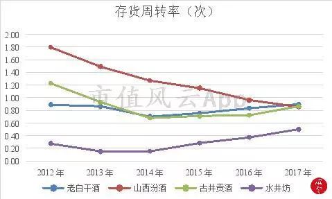 老白干酒近6年来的存货周转率分别为0.89次、0.86次、0.70次、0.75次、0.83次和0.89次,总体上相对平稳,变化不大,在同行业中处于居中水平,特别是2017年,与同行业其他公司的差距越来越小。