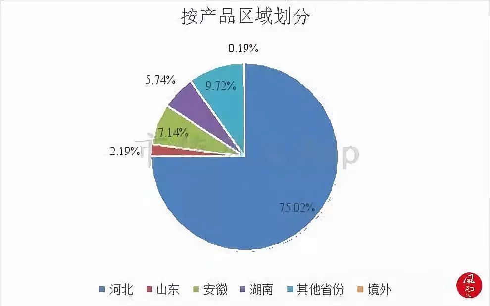 公司的营业收入按区域来划分,可以分为河北、山东、安徽、湖南、其他省份和境外。