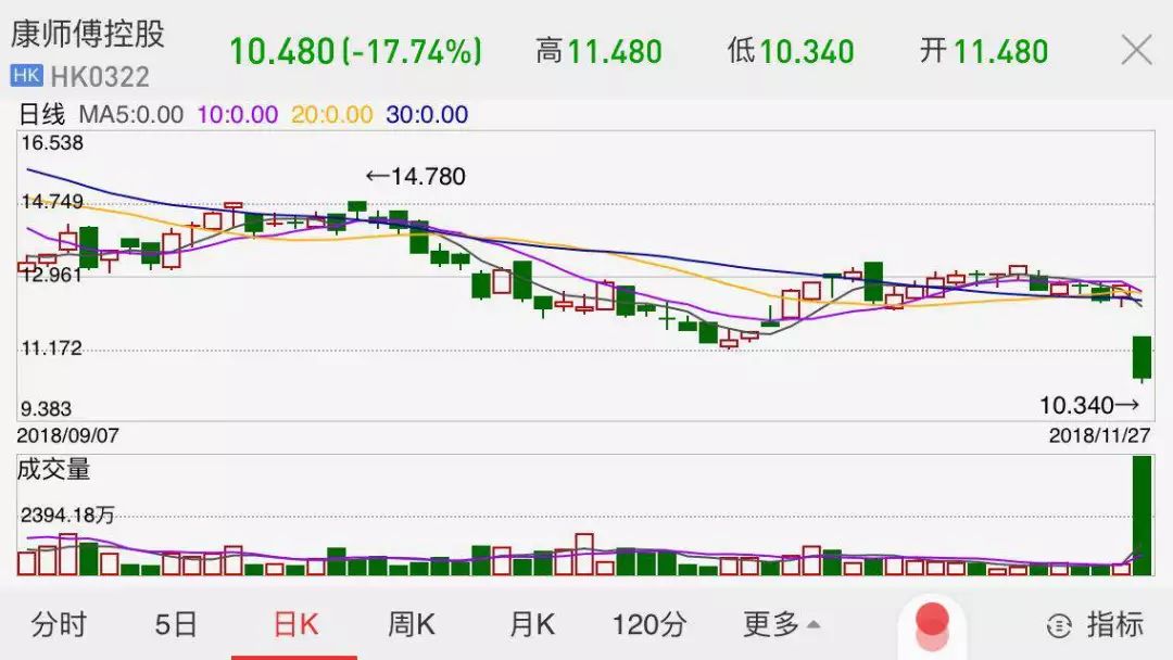 面不好卖、水也不好卖,康师傅创20年最大跌幅,一天蒸发百亿市值