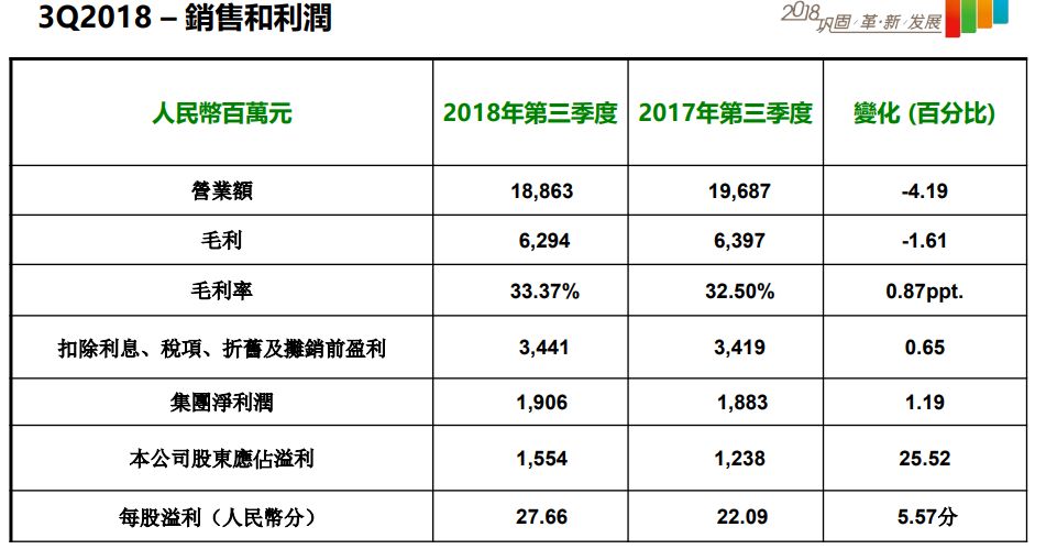 通过数据可以看出,总体上,康师傅在2018年前三季度营收、净利润双双增长,成绩不错,但是到第三季公司的营收却出现同比下滑。