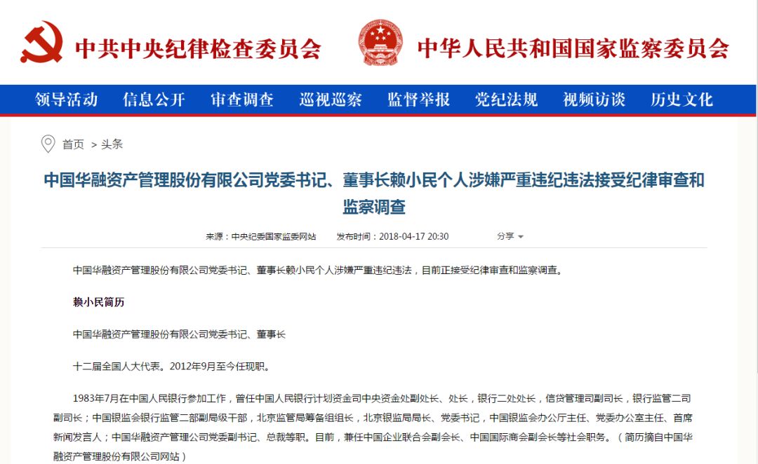 此番华融系上市公司的股价大涨也是在中国华融原党委书记、原董事长赖小民严重违纪违法问题尘埃落定之后。