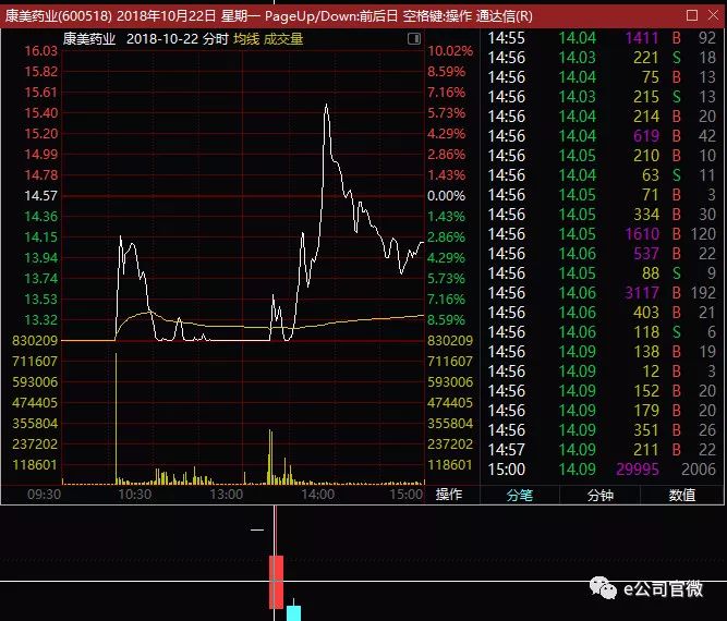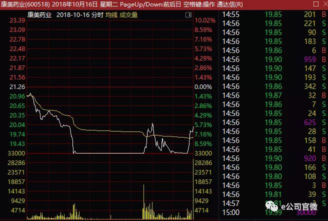 时间倒退回康美医药闪崩首日,10月16日,康美药业开盘后一路向下,10点40分左右闪崩跌停,随后一度封住跌停。在收市前最后几分钟内,该股获得拉升,最终收跌5.97%。