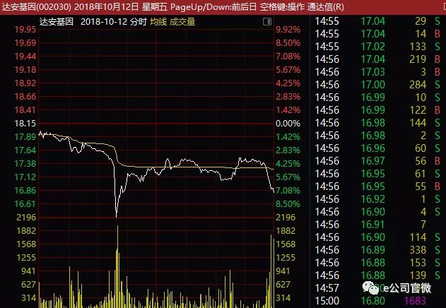 证券时报·e公司记者注意到,“陈树雄”账户中,有多只个股在10月份经历了闪崩。其中,达安基因闪崩时间稍早于康美药业。10月12日,该股于当日10点40分后急速下挫,一度闪崩跌停,最终收跌7.44%,随后4个交易日(10月15日至18日)继续大跌。