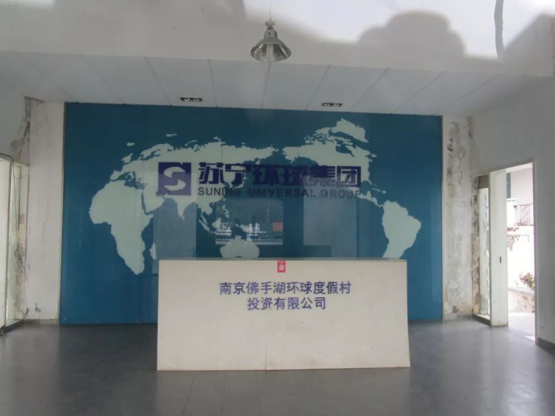 自此向东约300米处的珍七路(七珍线)1号院,就是南京佛手湖项目别墅销售中心。销售中心内外宣传展品及其相关设施已基本拆除,透过玻璃大门看到后墙、吧台贴有“苏宁环球集团、南京佛手湖环球度假村投资有限公司”大字。这是苏宁环球集团留下唯一尚能辨别该项目出处的“痕迹”。