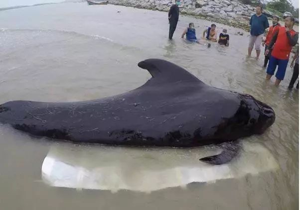 今年夏天,泰国南部的海滩上发现了一头生命垂危的鲸。紧急抢救5天后,这头鲸艰难吐出了5个塑料袋后死亡。工作人员对其尸体进行了解剖,结果令人震惊。
