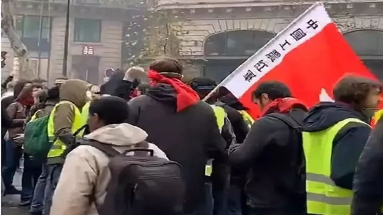 抗议人士在凯旋门外写上“推翻资产阶级“,而在聚集于奥斯曼大街的一群示威者中,更有人打出“中国工农红军”旗帜。