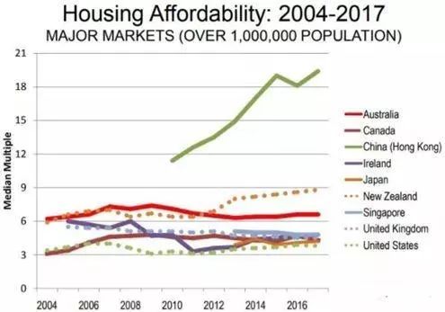 香港房价举世闻名。2018年1月,香港已连续第八年被美国规划咨询公司Demographia评为全球房价最难负担的城市。