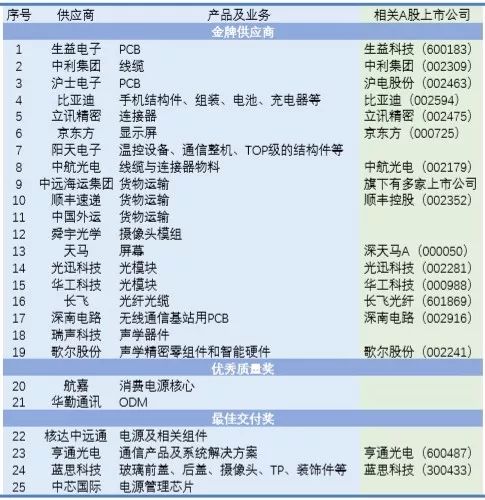 首创证券对获奖供应商名单及相关A股上市公司进行了梳理,结果显示相关A股上市公司包括: