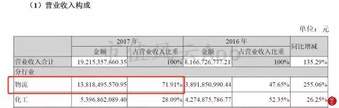 不过,从主营业务收入占比来看,物流这部分业务已经开始占主导地位。