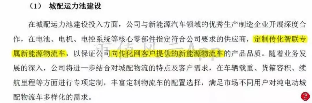 前者是发展新能源电动物流车租赁业务:先采购,再出租。