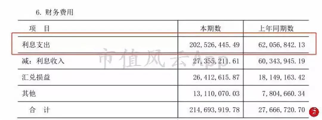 直接结果就是财务费用大增,以下选取的是半年报的明细数据。预计到三季度还在持续增加(三季报显示财务费用较上年同期增加了505.90%)。