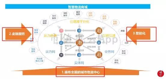 而物流这部分业务主要的落地方式为公路港:通过基础设施建设,加大城市物流中心项目的布局,并以此开展运营(如园区服务、包含运输、仓储服务的物流供应链服务);而以此为业务背景,又再延伸发展金融服务业务(支付、保理、融资租赁等)、智能化业务(智慧供应链解决方案、相关互联网平台建设)。